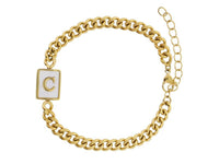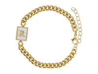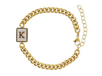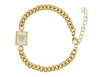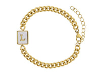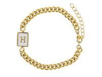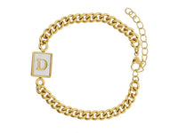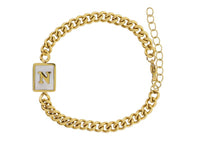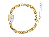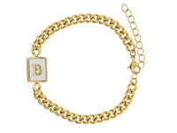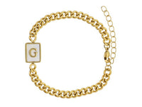 Gold Rectangle with Shell Inlay and Gold Initial Center Bracelet