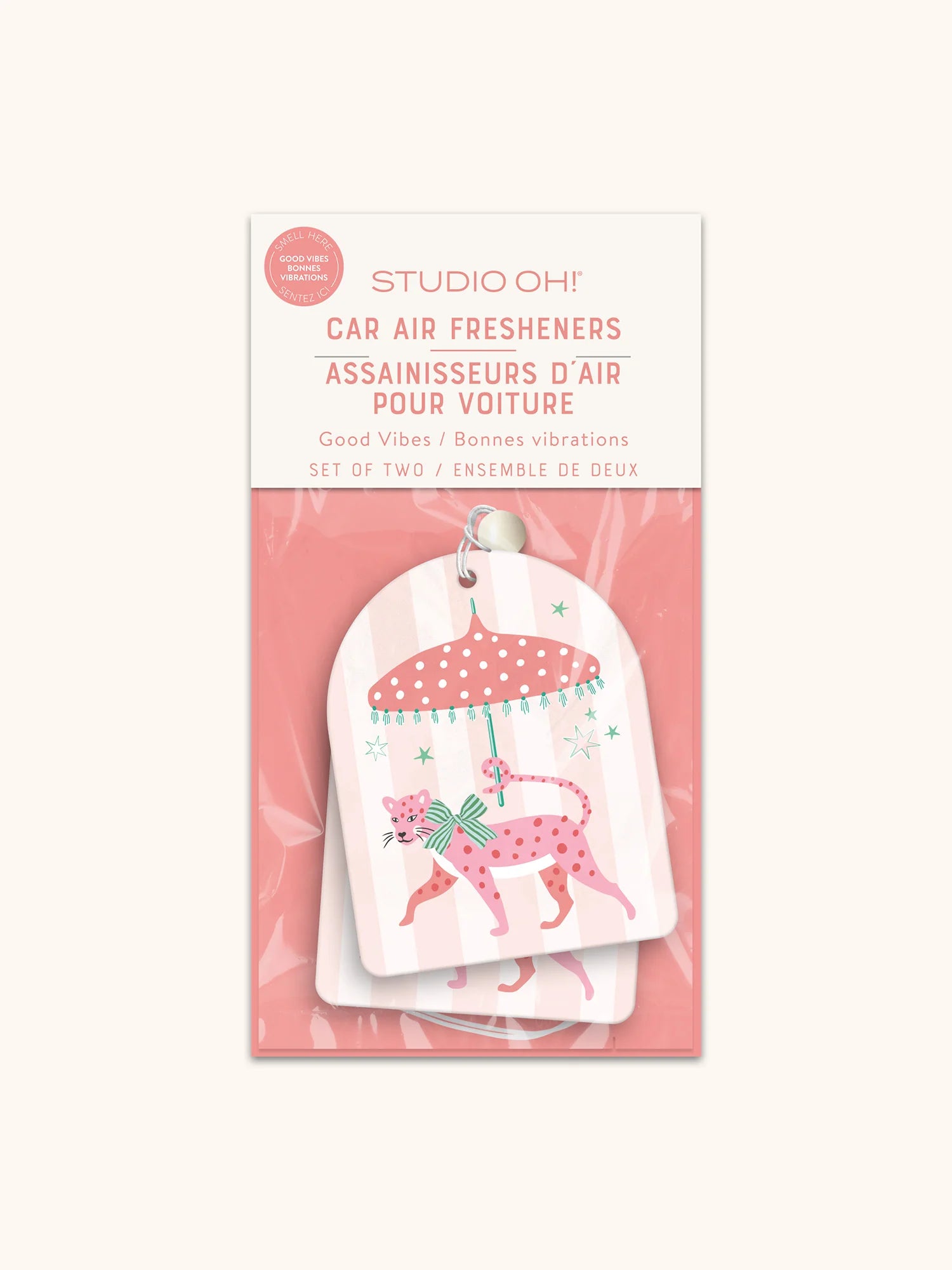 Make your drive time more pleasant with colorful car air fresheners from Studio Oh! These fragrance-infused designs are made with special DeoBoost® technology to help eliminate malodors and create longer-lasting freshness. With two car air fresheners per package, you can mix and match designs between cars or keep a spare tucked in your glove box.