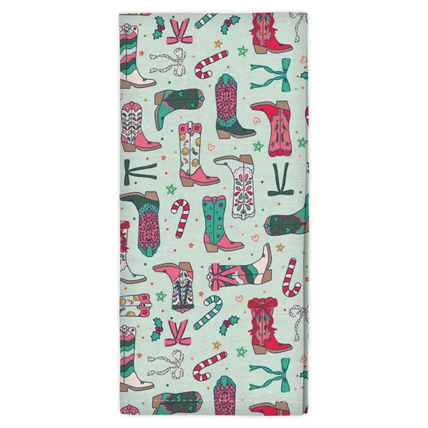 Christmas Western Cowgirl Boots Tea Towel