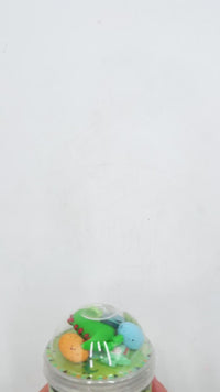 You'll want this Slime-a-Saurus Rex slime raptor 'round your fingers because it is SO fun to play with (and not sticky!). A green gel slime filled with foam balls and dinosaur eggs with a light ice cream scent, your kids will think it's so rawrsome! Inside the topper, there is a rainbow and dino egg sprinkle mix and a variety of dino characters to play with and mix in!