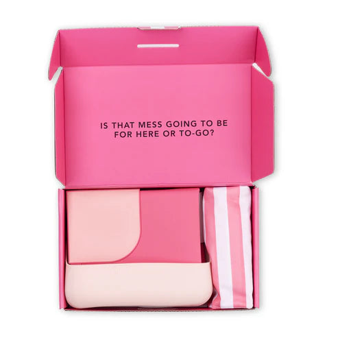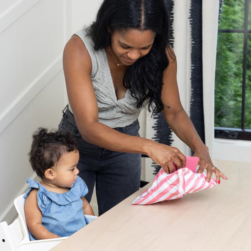 Pack, go, eat, repeat! Introducing our expert-approved toolkit of mealtime essentials to take on-the-go! This set is the perfect new baby gift and a parent must-have. Is that mess going to be for here or to-go? Just pack up the bib and placemat in the on-the-go bag, throw in some snacks and meals can happen anywhere.